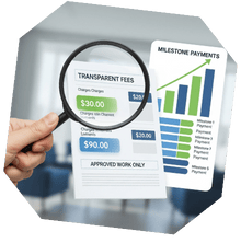 Transparent fees and milestone payments mean you only pay for approved work. No mystery charges—just predictable cost for real progress.